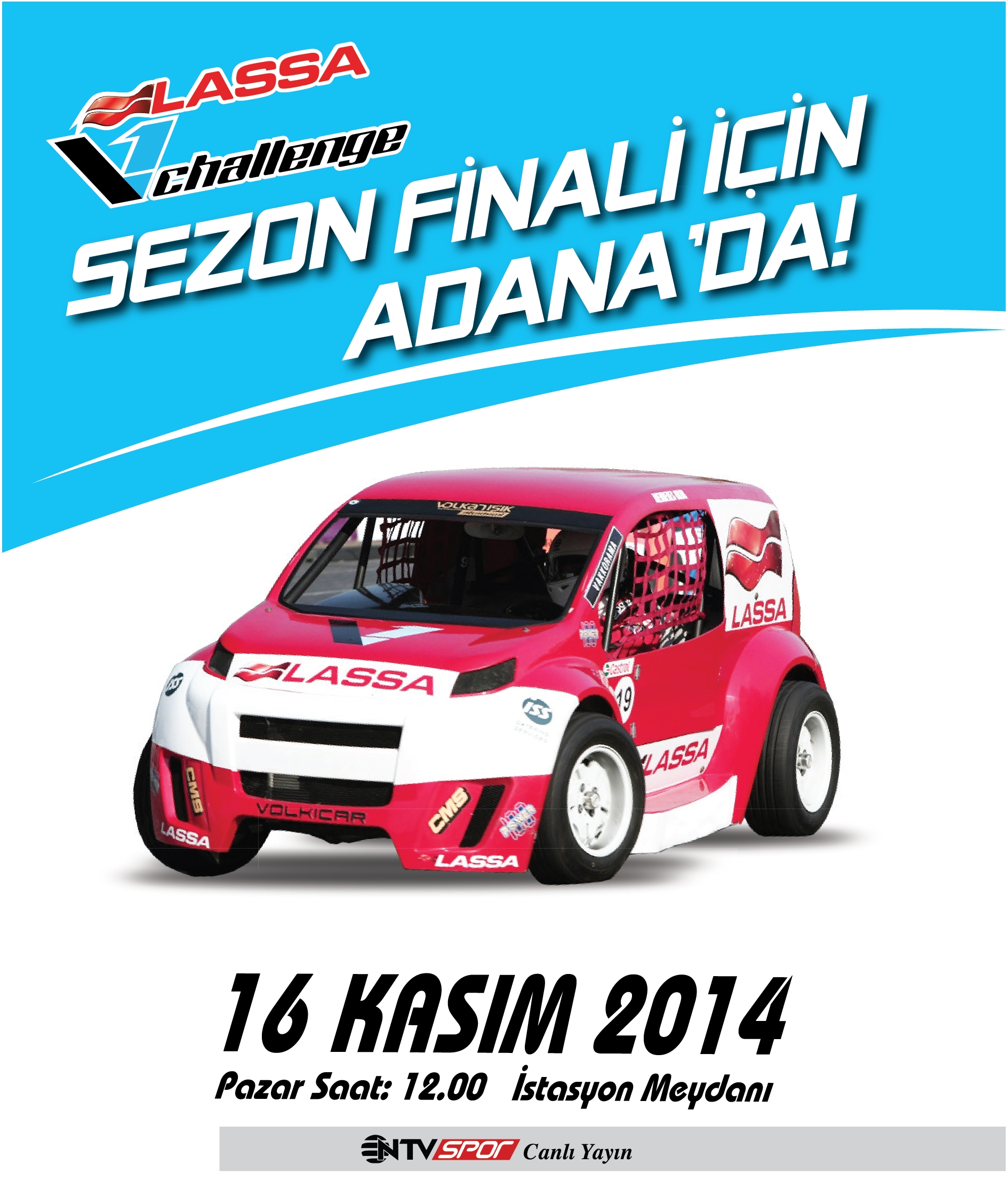 Lassa V1 Challenge 2014 sezonunun altıncı ve son yarışı Adana’da 16 Kasım Pazar günü gerçekleşecek. Dördüncü senesinde ilk kez Adana’yı ziyaret edecek olan VOLKICAR yarışlarının Adanalılardan büyük ilgi görmesi bekleniyor.