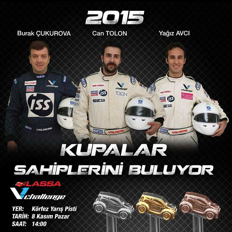 Lassa V1 2015 sezonunun final yarışı 8 Kasım Pazar günü İzmit Körfez Pisti’nde gerçekleşecek. Can Tolon galibiyet için avantajlı ancak Yağız Avcı ve Burak Çukurova ile mücadelenin çok çetin geçmesi bekleniyor.